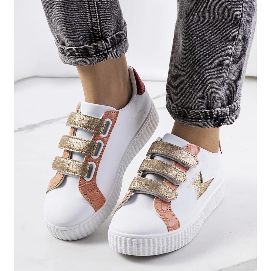 Vita sneakers Pitmerden (Model M-973) -En idealisk bas för sommar, avslappnade stiliseringar. Den övre delen av ekologiskt läder av hög kvalitet i klassiskt vitt har varierat med rosa skär i temat ormen, som ger skorna en snygg, feminin karaktär. Låg, bekväm och praktisk - bra varje dag.