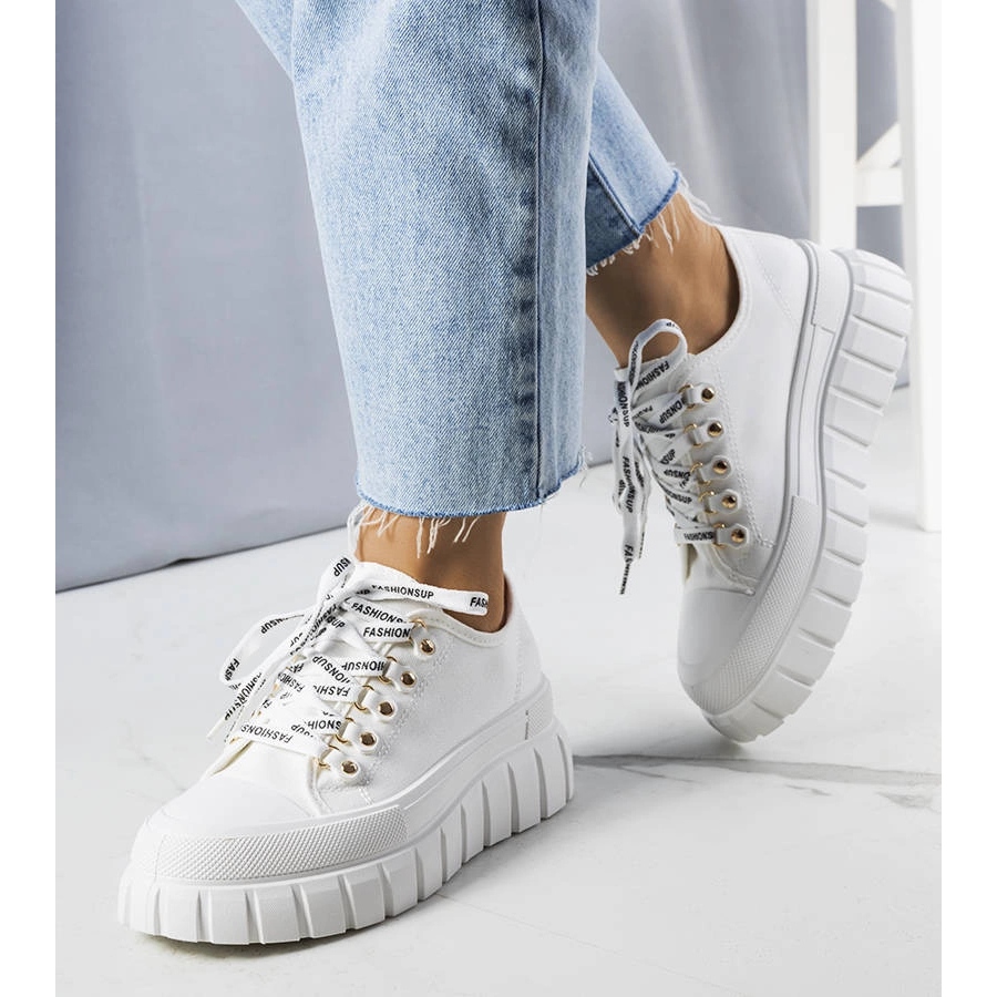 Toni vita platåsneakers är ett perfekt val för kvinnor som vill kombinera komfort med moderiktig stil. Dessa sneakers är gjorda av högkvalitativt tyg och utmärker sig för sin solida finish och eleganta design. VO-YD226-01-modellen är knuten med platta, loggade snören, vilket ger karaktär och gör dem extremt funktionella.