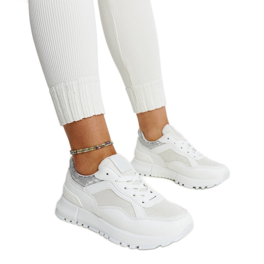 Evelia vita plattformssneakers med glitter är ett perfekt val för kvinnor som värdesätter inte bara komfort, utan också en moderiktig look. Deras låga ovandel med rund tå garanterar bärkomfort hela dagen och tillverkad av högkvalitativa material säkerställer hållbarhet och estetik.