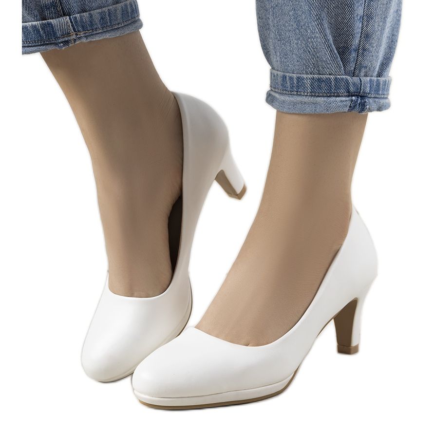 Information: Vita pumps på en stilettklack tillverkad av ekoläder Fink