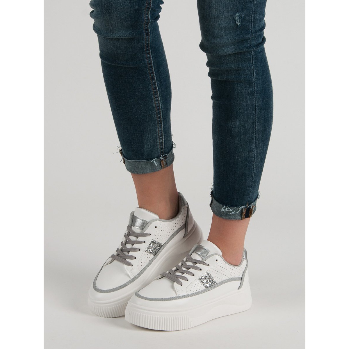 Vi presenterar vita creepers med glitter - ett måste för alla modeintresserade! Dessa sportskor gjorda av högkvalitativt ekologiskt läder är en perfekt kombination av stil och komfort. Deras universella design gör att de matchar perfekt med olika stilar, både med romantiska kjolar och avslappnade jeans.