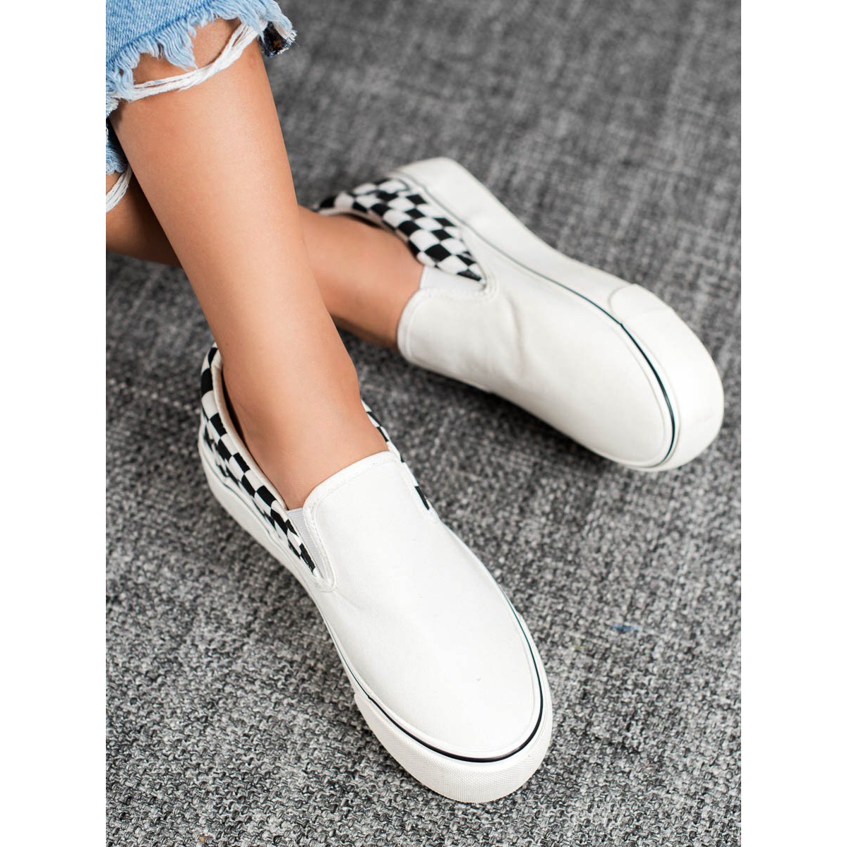 Vi presenterar vita SHELOVET slipons - perfekta för våren och sommaren! Dessa unika damsneakers kombinerar moderiktig design och komfort att bära. Tillverkade av högkvalitativa textilier kommer de att se bra ut i vardagsstyling.