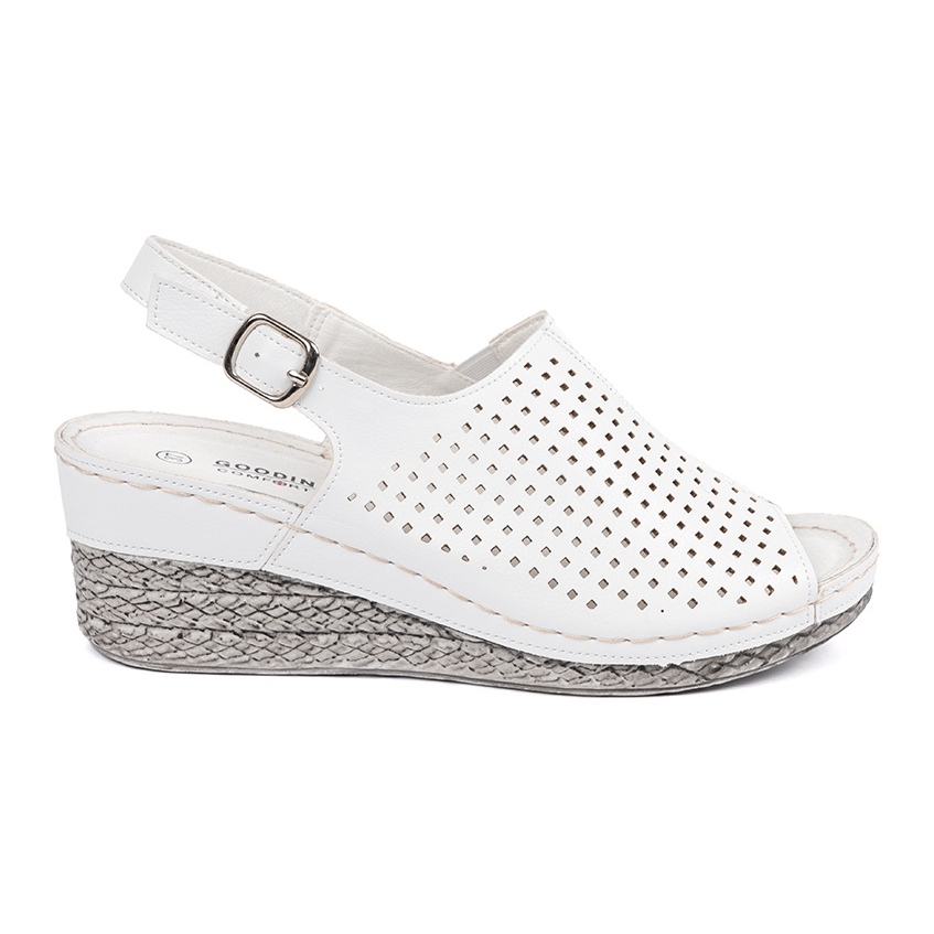 Goodin Sandals i en elegant vit kilfärg är ett mode måste för varje kvinna som vill kombinera stil med komfort. Dessa öppna sandaler är designade för olika tillfällen och kommer säkert att lägga till klasser till alla stiliseringar, från dagliga uppsättningar till mer formella utgångar.