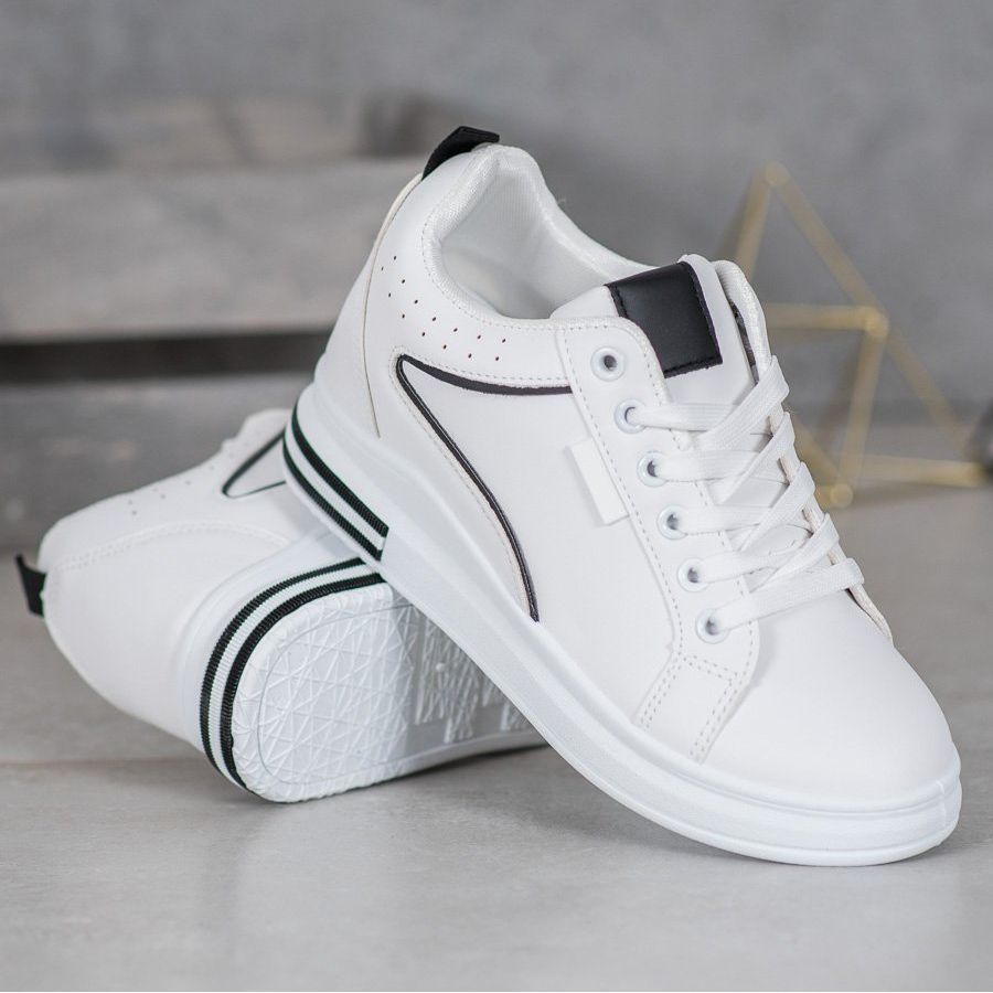 Vi presenterar vita skor med en dold kil från SHELOVET - det perfekta valet för en modern kvinna som värdesätter både ett moderiktigt utseende och komfort. Dessa damsportskor kännetecknas inte bara av en attraktiv design, utan också noggrant gjorda av högkvalitativa material, vilket säkerställer deras lätthet och hållbarhet.