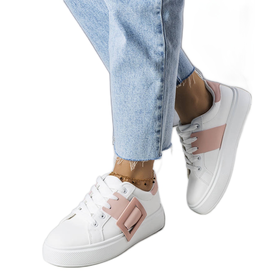 Vita sneakers med en rosa Toni -spänne - Model LA813