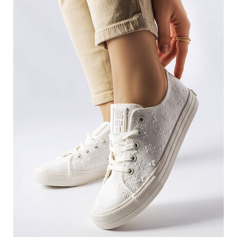 Vita sneakers med Big Star-broderi LL274223 - en klassiker i feminin version