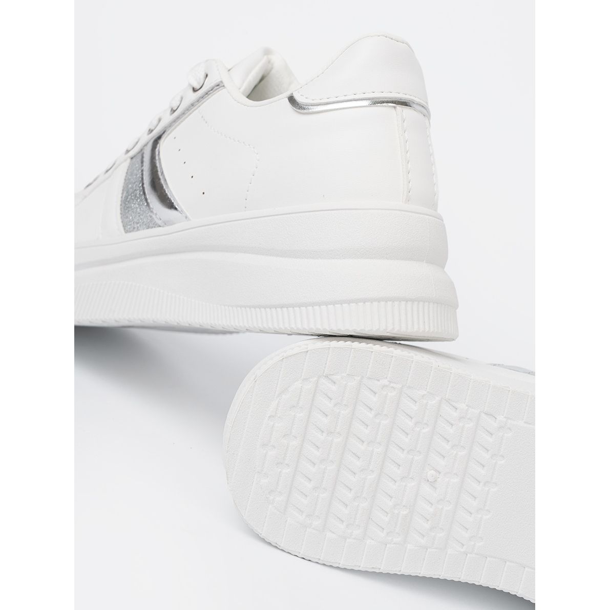 Vita sneakers med en metallisk silver accent från tillverkaren Shelvt är ett utmärkt val för moderna kvinnor som värderar stil och komfort. Dessa sportskor kombinerar elegans och funktionalitet, vilket gör dem perfekta för varje dag, både i liv och rörelse och under möten med vänner.