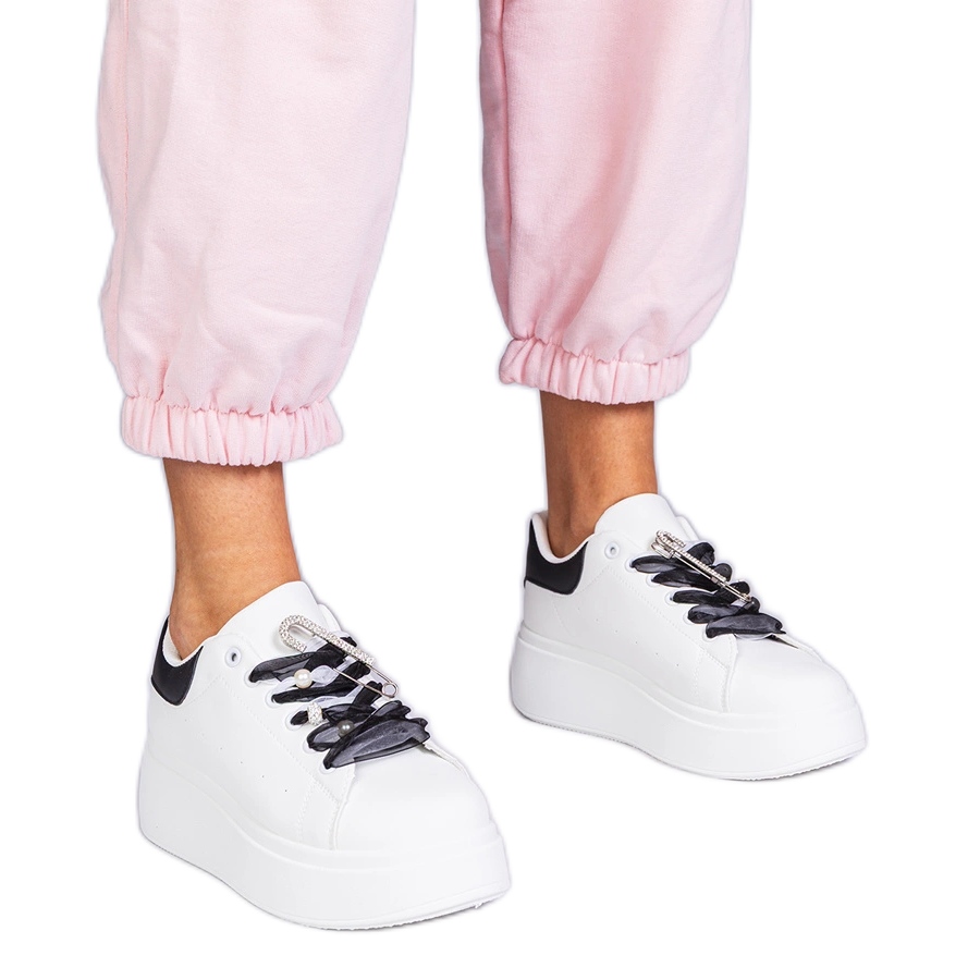 Information: Vita sneakers med en svart insats och en zirkonstift