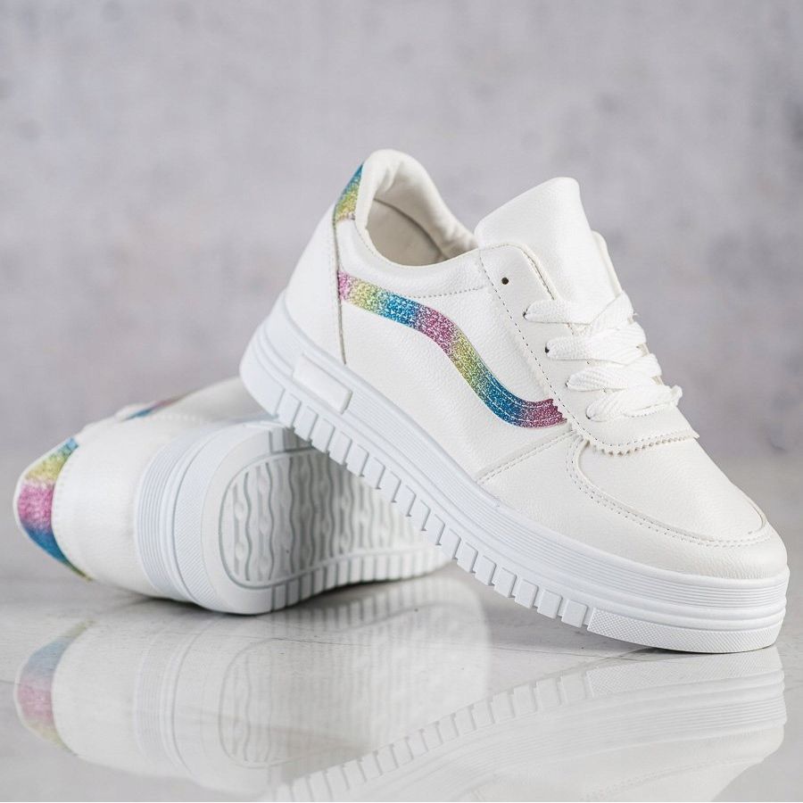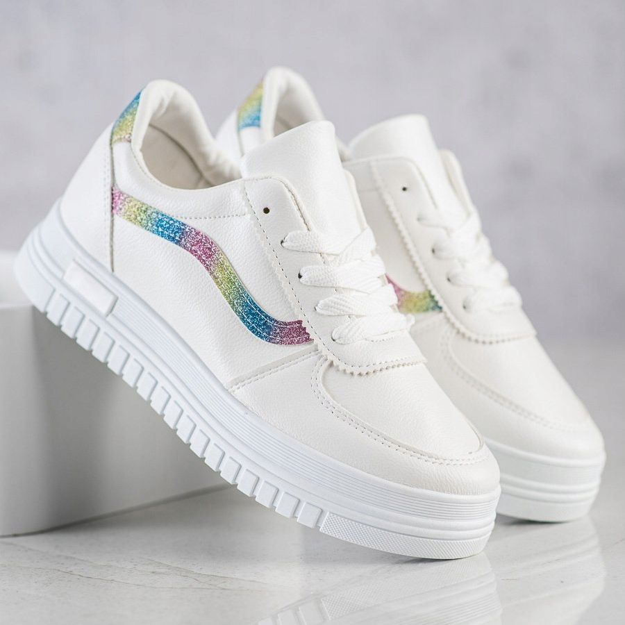 Detaljer: SHELOVET Vita sneakers med glitterinsats