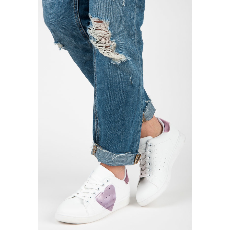 Det romantiska motivet av ett lila hjärta, placerat på sidan, lägger till karaktär och feminin charm, vilket gör att deras ägare sticker ut i mängden. Tack vare sin låga höjd och bekväma innersula i tyg ger dessa sneakers komfort vid varje steg, perfekta för både en promenad och avslappnad styling.