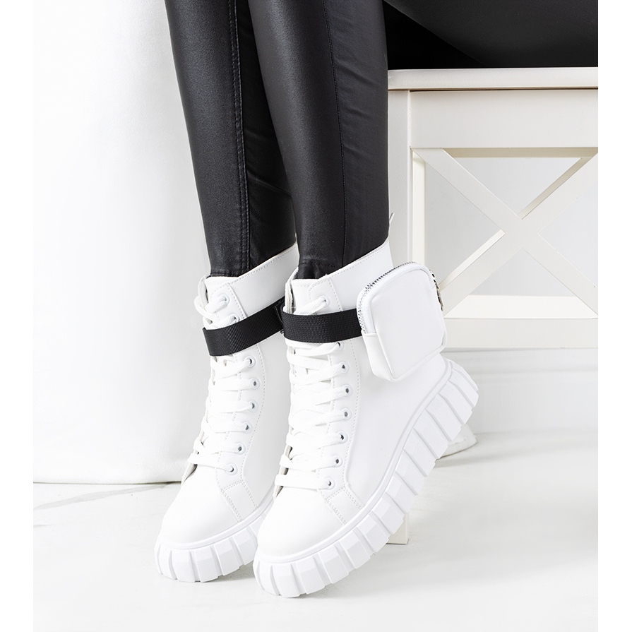 White Haver plattformssneakers är ett perfekt val för varje fashionista som vill lägga till lätthet och en unik karaktär till sin styling. Haver-modellen kännetecknas av en hög, moderiktig sula som inte bara framhäver figuren, utan också säkerställer komfort under hela dagen.