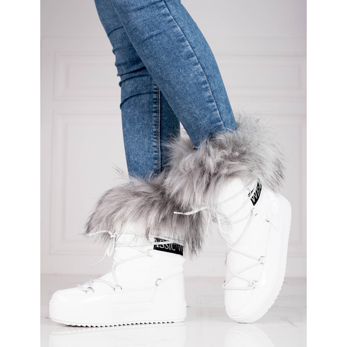 Detaljer: Vita snöstövlar för kvinnor med Shelovet-päls