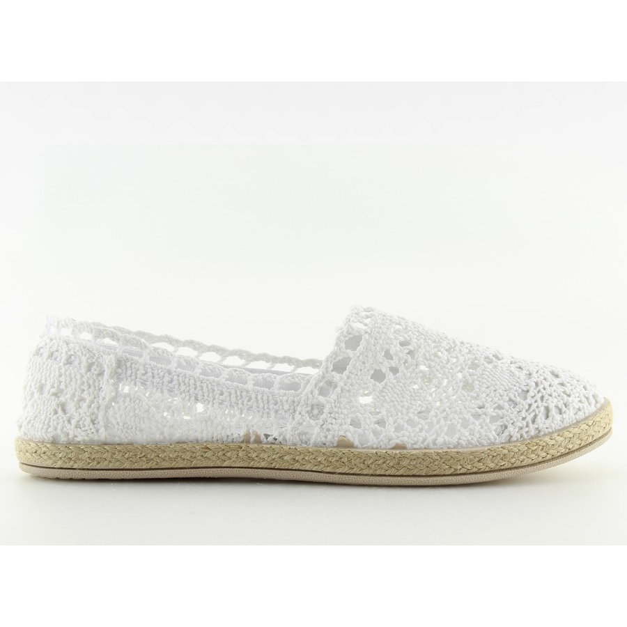 Upptäck de genombrutna vita spets-espadrillorna JX57P, som passar perfekt in i sommarens trender. Dessa eleganta skor i ballerinastil är omsorgsfullt gjorda av vitt, mjukt spetsmaterial, vilket ger dem en subtil och flickaktig karaktär.