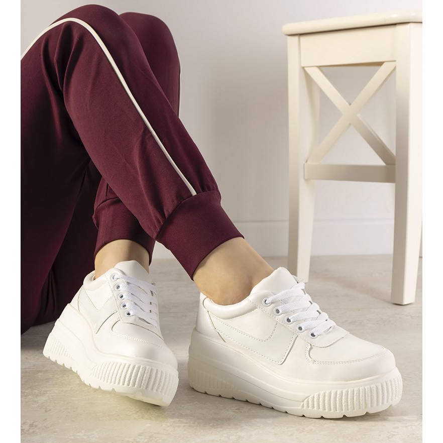 Vita sportsneakers med hög sula Challenge är det perfekta valet för människor som vill kombinera en moderiktig look med komforten att bära. Dessa trendiga sneakers kommer perfekt att komplettera alla stylingar, både vardagliga och mer avslappnade.