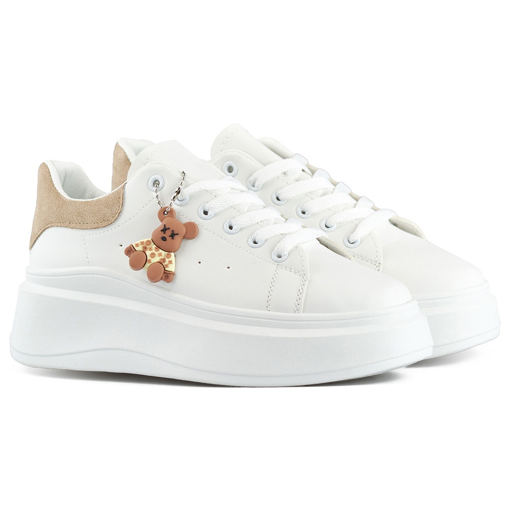 Satsa på fashionabla vita sportskor på en tjock sula med beige björn och njut av en kombination av stil, komfort och funktionalitet!