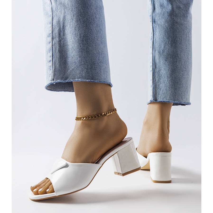 Lär känna det vita patentet Branch högklackade mulor - ett måste för varje fashionabel kvinna som letar efter elegans och komfort för sommardagar. Dessa snygga flip-flops är en kombination av modern design och funktionalitet. Tillverkade av ekologiskt läder, täckt med iögonfallande lack, lockar de uppmärksamhet och ger fräschör till varje styling.