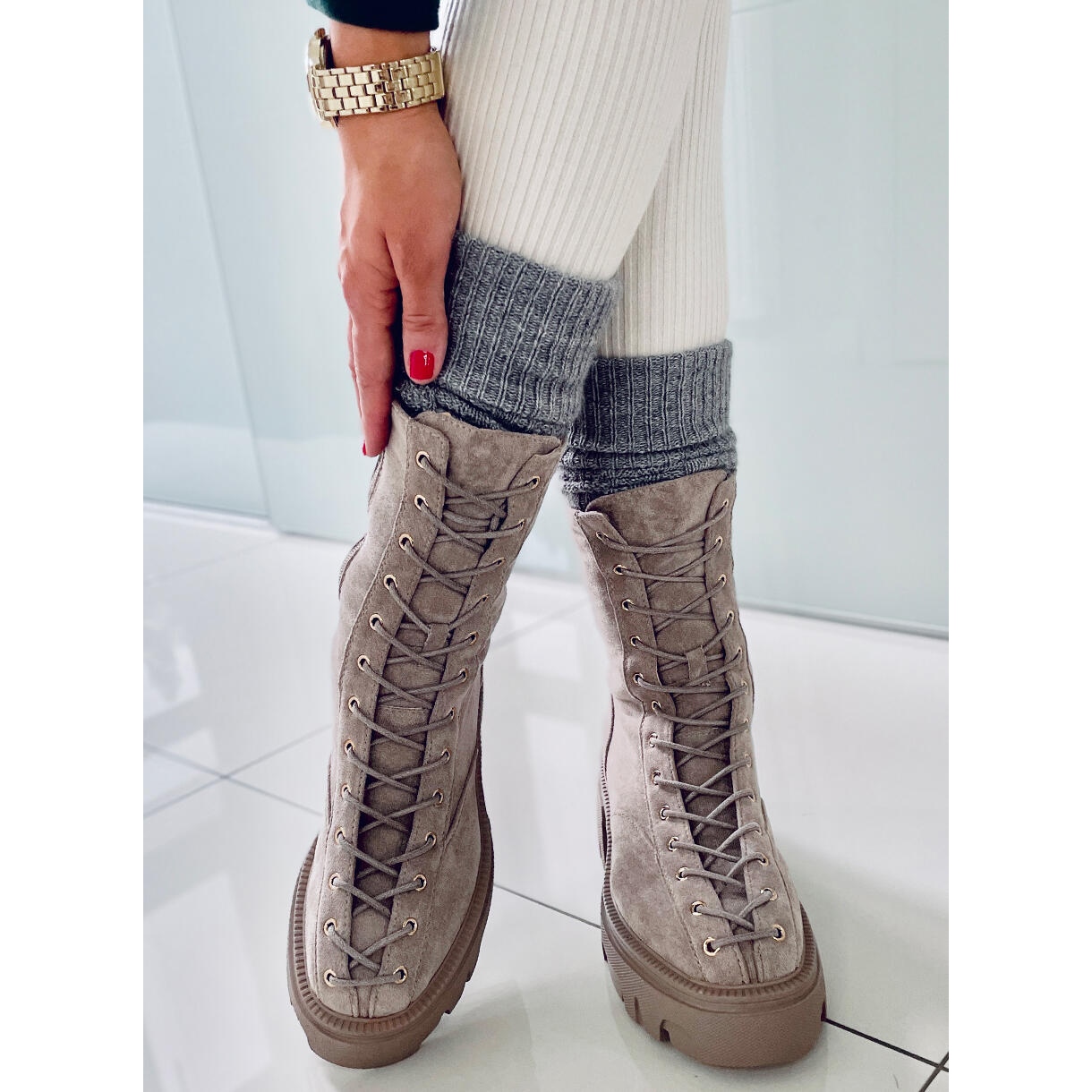 Detaljer: BM Wayne Khaki damstövlar med snörning beige grå