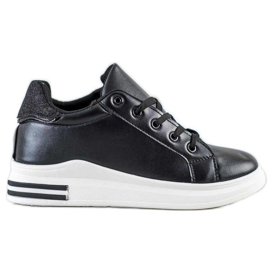 Diamantique wedge sneakers i elegant svart är ett perfekt val för kvinnor som värdesätter en moderiktig look och vardagskomfort. Dessa snygga skor kännetecknas av en subtil glitterfinish på sidan av hälen, vilket ger dem en unik karaktär. Sneakersna är gjorda av eko-läder och kombinerar stil med eko-medvetenhet - perfekta för en mängd olika vardagsstilar.
