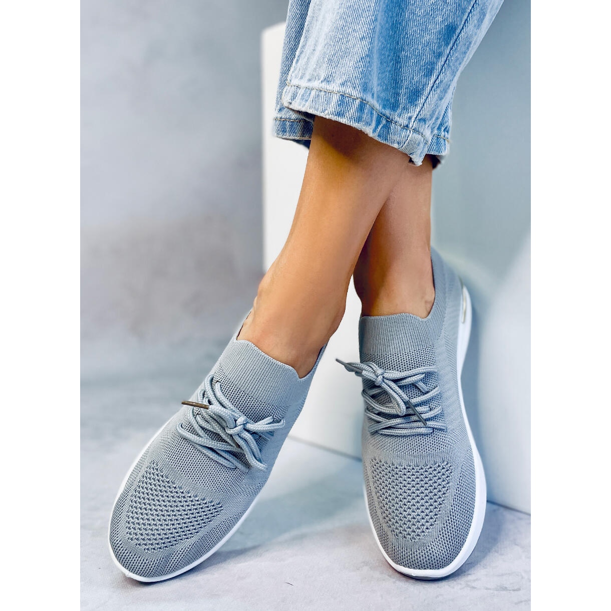 Moderna sportskor i "strumpan" -stilen Welo Gray är en kombination av komforten med att träna skor med ett urbant, fashionabelt utseende. De är helt gjorda av flexibelt tyg och fäster perfekt mot foten och säkerställer komforten att bära hela dagen. Den universella grå finishen innebär att de matchar både sport och avslappnade stiliseringar.