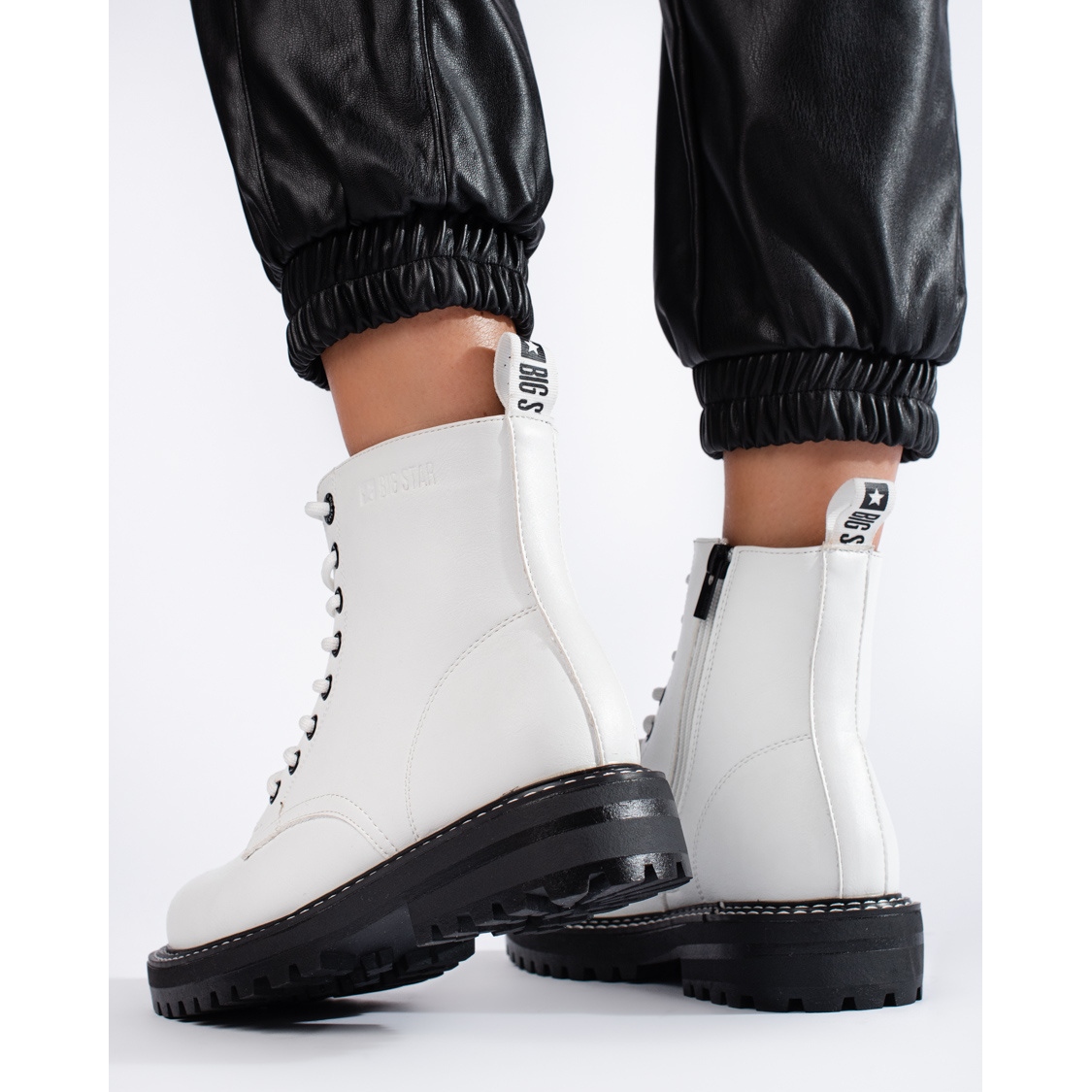 White Big Star KK274539 arbetare är praktiska, fashionabla skor för hösten/vintersäsongen - varm, bekväm och universell. Idealisk för kvinnor som letar efter en stad, något rockkaraktär samtidigt som den behåller vardagens komfort. Beställ nu och uppdatera din garderob med en tidlös, vit accent.