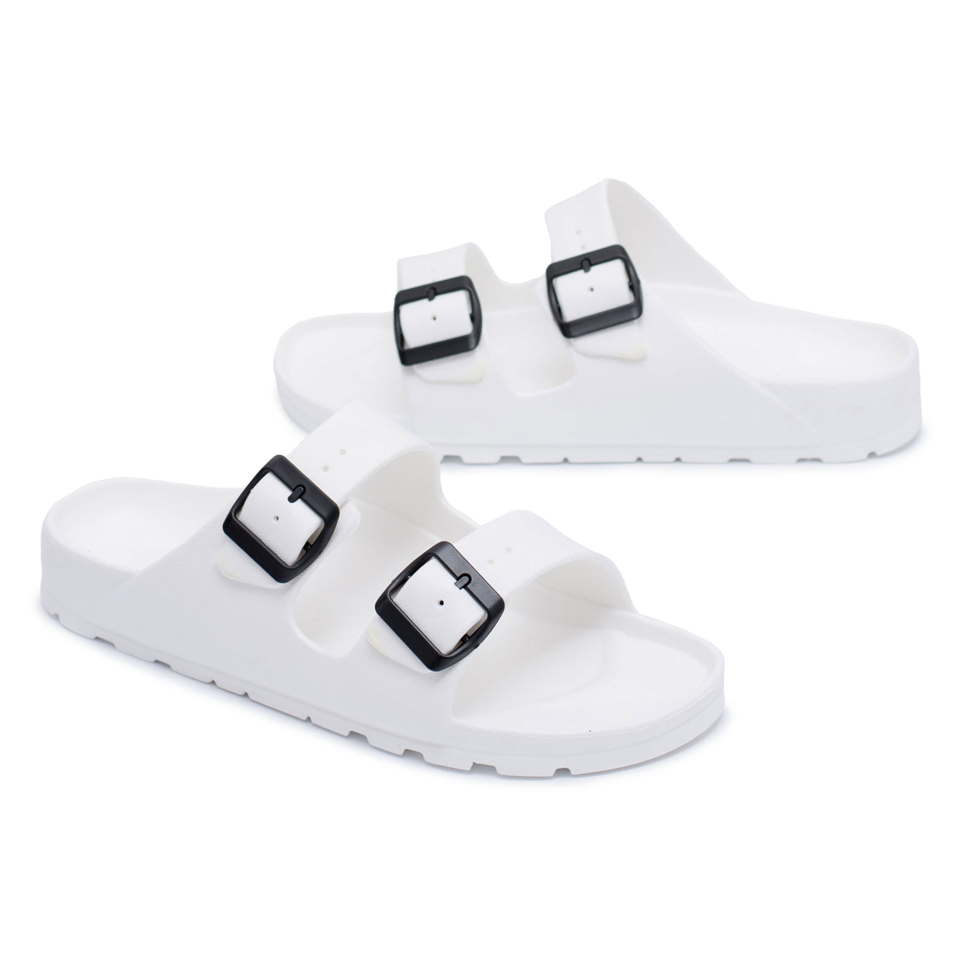 Flip-flops finns i olika fashionabla mönster, men den vita versionen kommer säkerligen att locka uppmärksamhet och tillföra fräschör till varje styling. Deras lätthet bevisas av deras vikt på endast 0,5 kg, vilket gör dem perfekta för stranden, i trädgården eller under promenader.