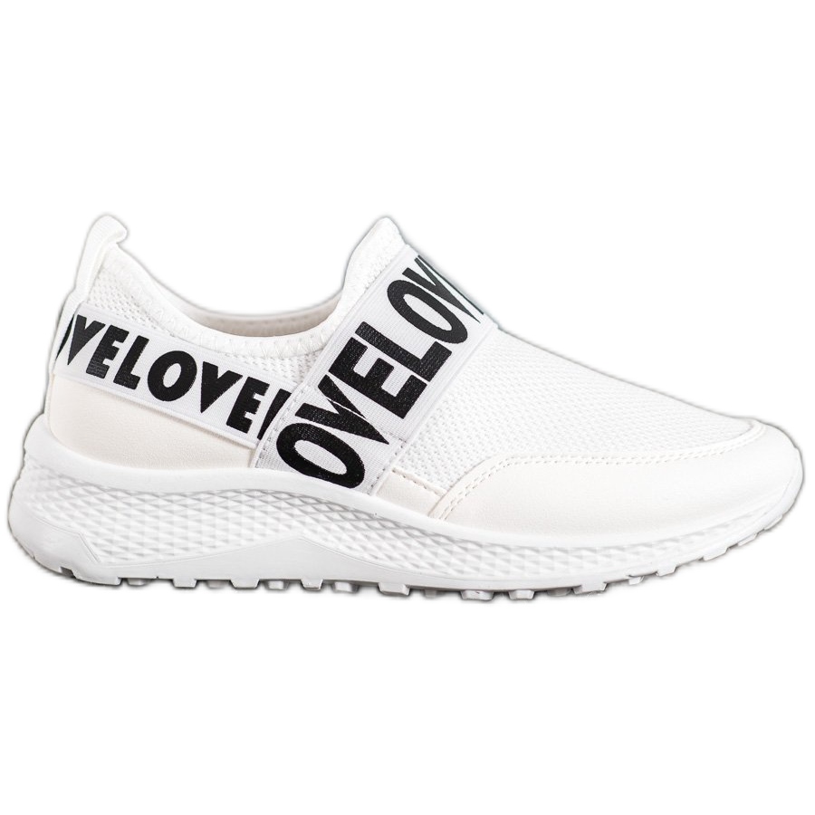 White Weide slip-ons är det perfekta valet för kvinnor som vill kombinera komfort med moderiktig stil. Tack vare slip-on-designen är dessa sportskor extremt praktiska och lätta att ta på, vilket gör dem perfekta för vardagsbruk. De kännetecknas av en attraktiv "Love" -inskription i en kontrasterande svart färg, vilket ger dem en distinkt karaktär.