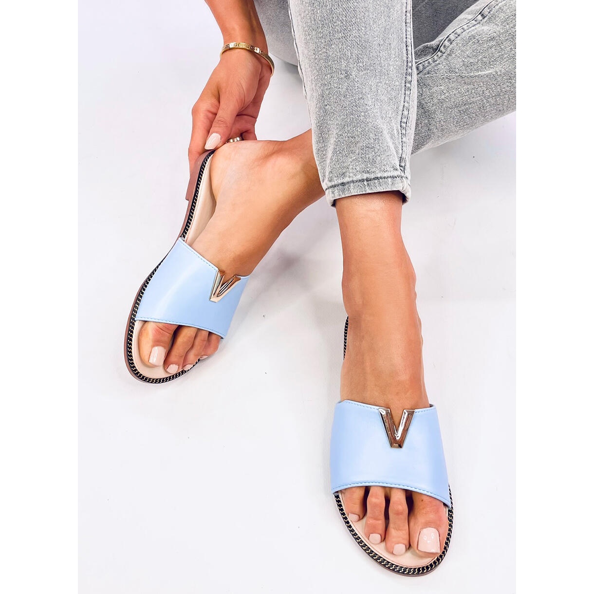 Women's Boots Willow Blue Slippers - Blå, elegant minimalism med en subtil glans. Slyckare gjorda av ekologiskt läder lockar uppmärksamhet med en guldformad gulddekoration, vilket ger dem en distinkt men dämpad accent. Perfekt för vardagliga, avslappnade stiliseringar - för en promenad, att arbeta på varma dagar eller för att träffa vänner.