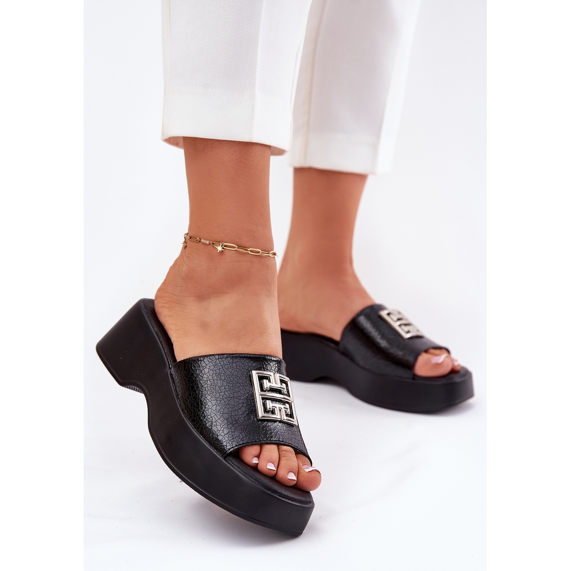 Detaljer: Vinceza Women's Leather Flip Flops with Decoration Vincez 79526 Black svart
