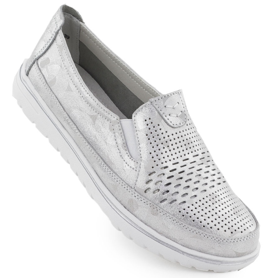 Kvinnors läderskor Openwork Silver Evento 1653 är det perfekta valet för kvinnor som vill kombinera elegans med komfort. Deras unika, metalliska silver- och öppningsskärning gör dem till ett perfekt komplement till varje sommarstylisering och lägger till dess lätthet och unika karaktär.