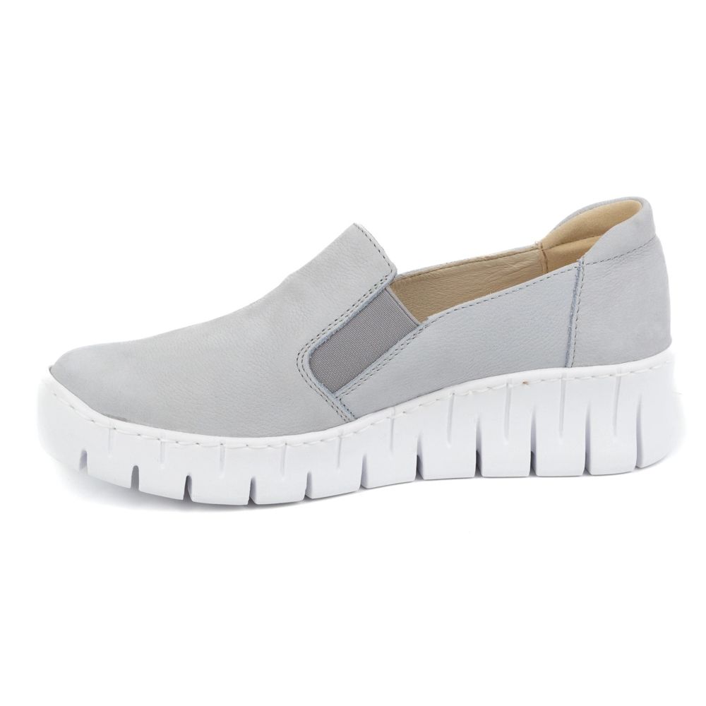 Upptäck komfort och stil med kvinnors läder glidande halva murar wasak 0721w i ljusblå! Dessa unika skor, tillverkade av högkvalitativt naturläder, är ett utmärkt val under vårdagar. Den klassiska övre ger inte bara ett elegant utseende, utan också komforten att bära hela dagen.
