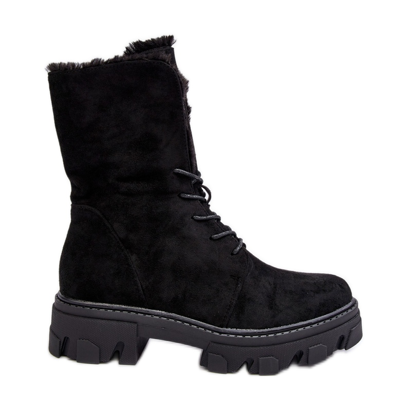 PS1 PS1 Workerboots med snörning i mocka med päls, svart frendo