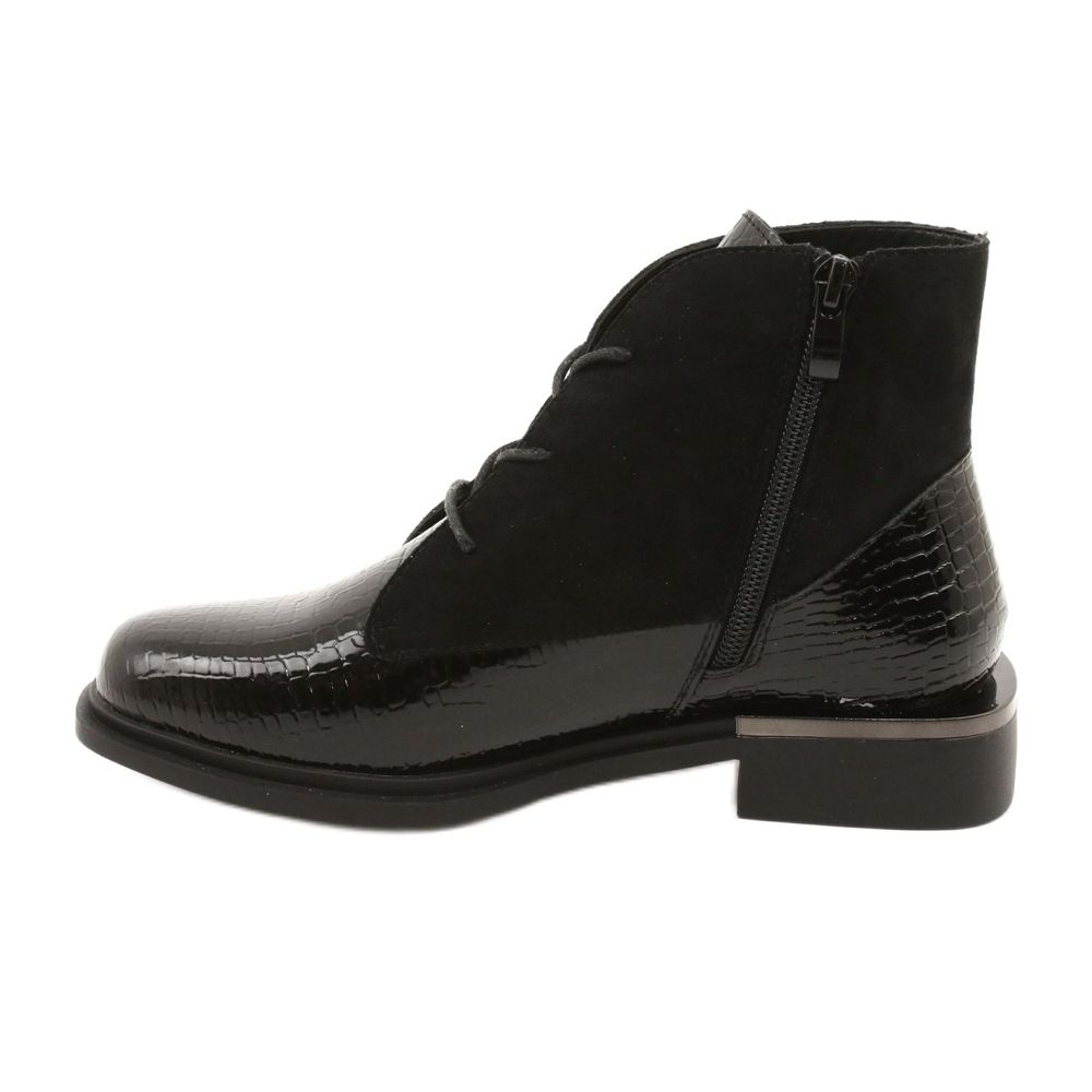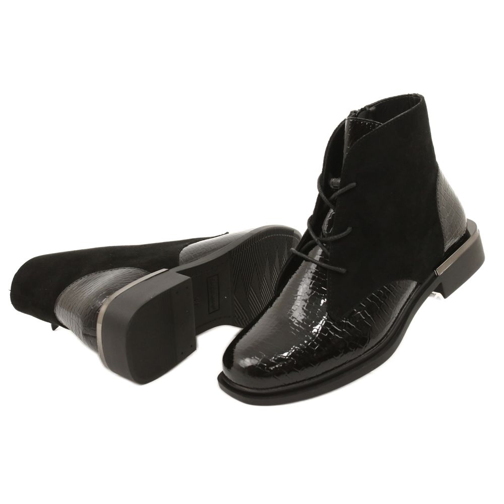Modellen BT401, i klassisk svart, är det perfekta komplementet till alla kvinnors garderob. Tack vare den lackade finishen och det dominerande djurmönstret blir de en fashionabel accent som väcker uppmärksamhet. Stövlarna har en rund tå, vilket ger subtilitet, och deras platta häl gör att du kan gå i dem i långa timmar utan att känna dig trött.