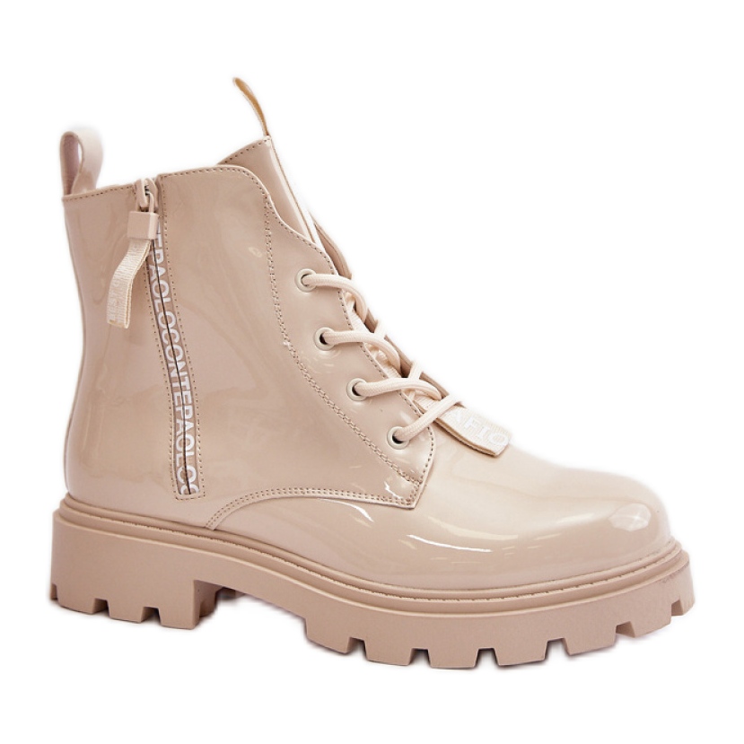 Fastade med en blixtlås och dessutom snören ger de en perfekt passform på foten, vilket gör att du kan röra dig fritt hela dagen. De övre stövlarna har dekorerats med fashionabla inskriptioner, vilket ger dem en original karaktär och får dem att sticker ut från andra modeller.