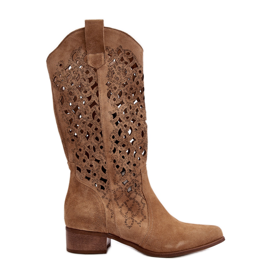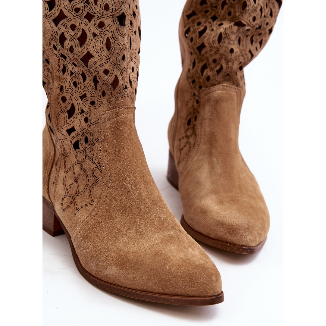 Detaljer: Zazoo 3403 Openwork stövlar för kvinnor på låga klackar, beige