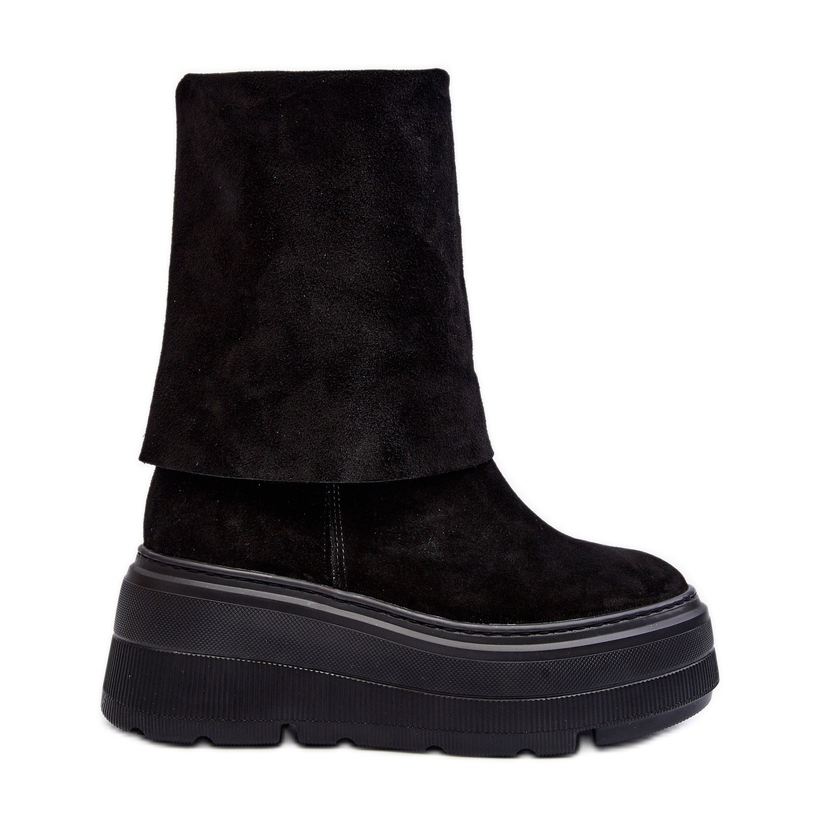 Zazoo Zazoo 3410 mocka stövlar för kvinnor på en massiv plattform, svart