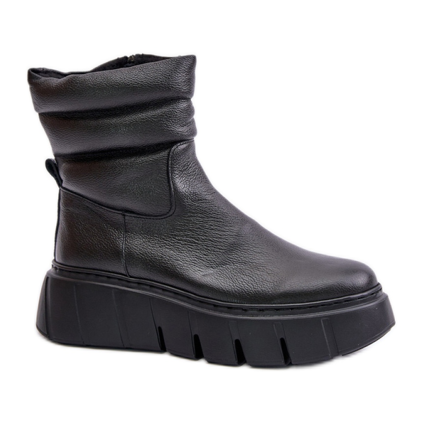 Tack vare plattformen med en delikat kil erbjuder dessa stövlar rätt höjd utan att förlora komfort. Höjden på den övre av 17 cm och hälhöjden på 6 cm gör att modellen perfekt blandas med olika stiliseringar, från vardag till mer elegant. Den runda näsan ger ett klassiskt utseende som aldrig går ut ur modet.
