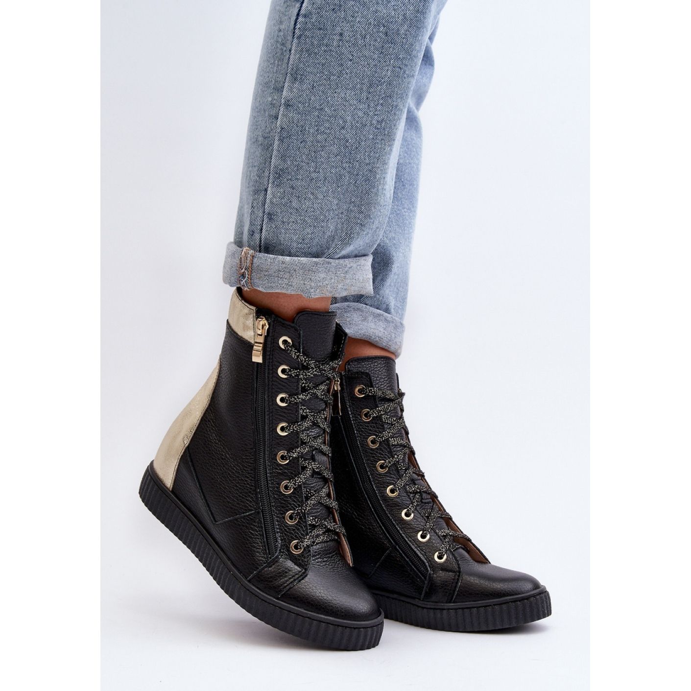 Tveka inte-Womens sneakers Zazoo Black för att måste ha i varje kvinnors garderob. Deras enkla, eleganta design i kombination med gyllene detaljer fungerar i både vardagliga och mer eleganta stiliseringar. Investera i komfort och utseende som kommer att glädja alla!