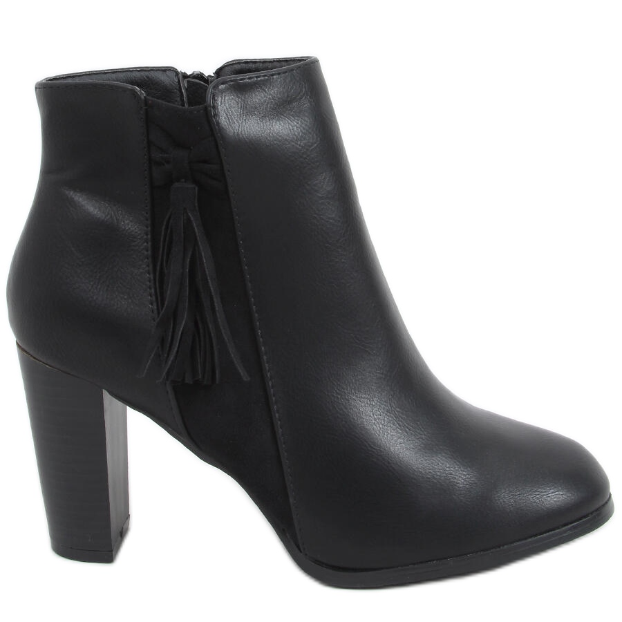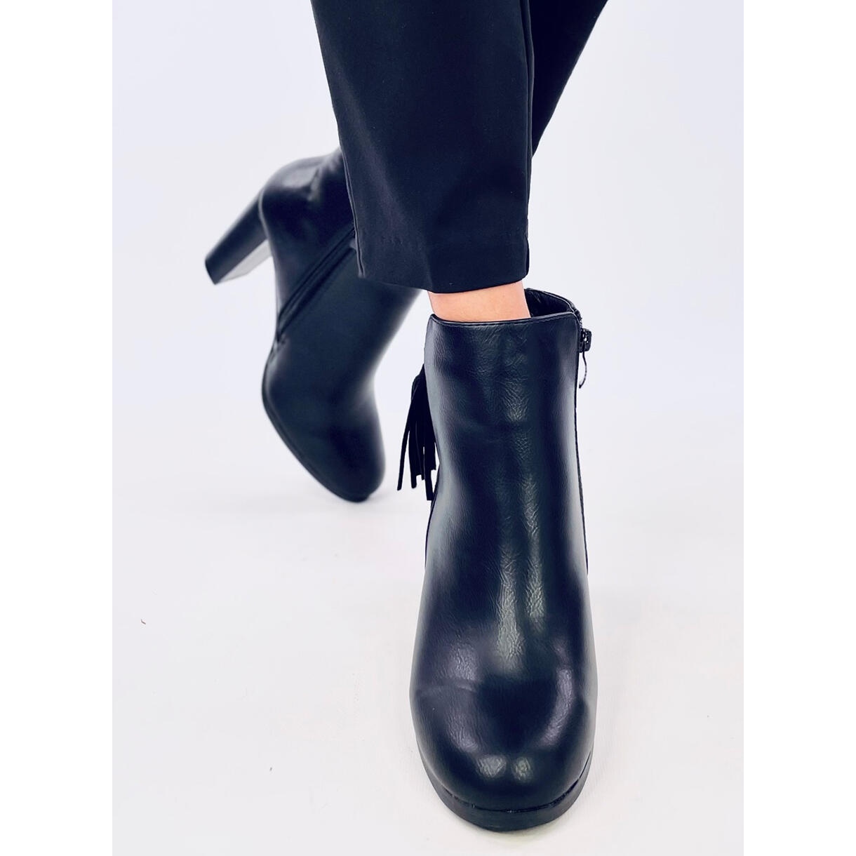 Klassiska svarta stövlar på en 8,5 cm hög stolpe, som subtilt förlänger benen och lägger till en feminin karaktär till figuren. De kännetecknas av en delikat båge med fransade placerade på sidan av den övre, vilket ger dem en unik mode accent. Tillverkad av permanent ekologiskt läder med en smakfull Eco Suede Insert - en kombination som fungerar bra varje dag och för mer eleganta utgångar.